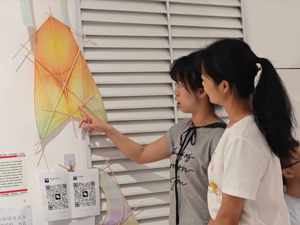 老师们认真观摩了每一件作品,尤其关注作品中独特的色彩运用、丰富的材料表现、童趣盎然的造型语言以及深刻的人文内涵。大家不时驻足讨论,交流感受,并用手机记录下富有启发性的画面和创意点。