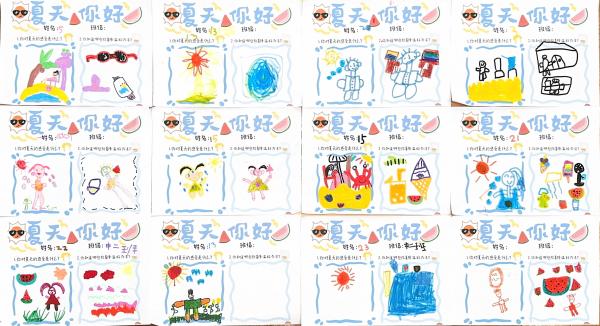 面对炎炎夏日,怎么让身体凉快下来?孩子们带着疑问,回到家和爸爸妈妈一起用画笔记录防暑降温的小妙招。