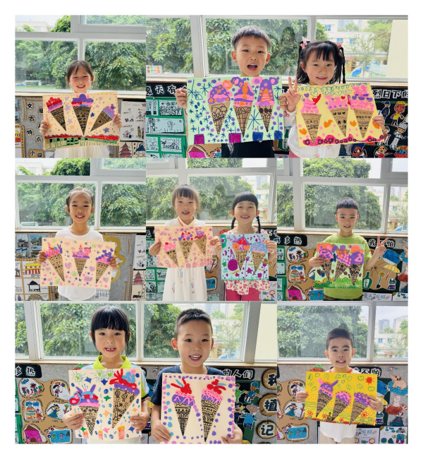孩子们兴奋地展示着自己的“冰激凌”,脸上洋溢着满足和自豪的笑容,这么多美味诱人的“冰激凌”,给他们阵阵清凉和快乐!