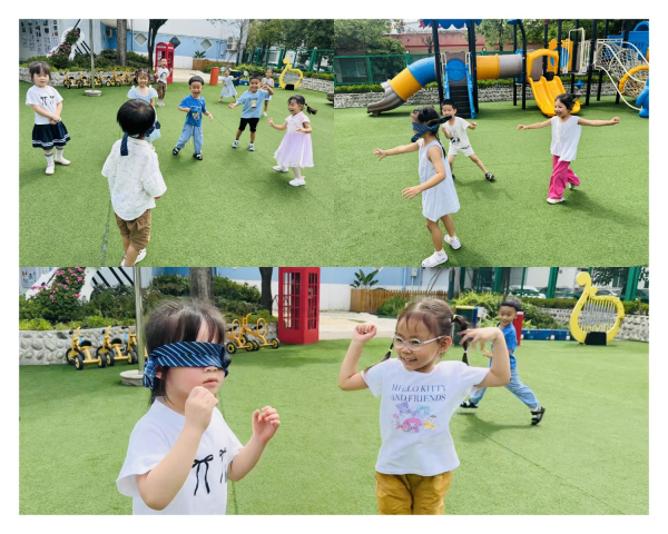 幼儿在走的过程中拍手,并大声叫对方的名字。找声音的幼儿需判断声音的远近并找到伙伴才算挑战成功。