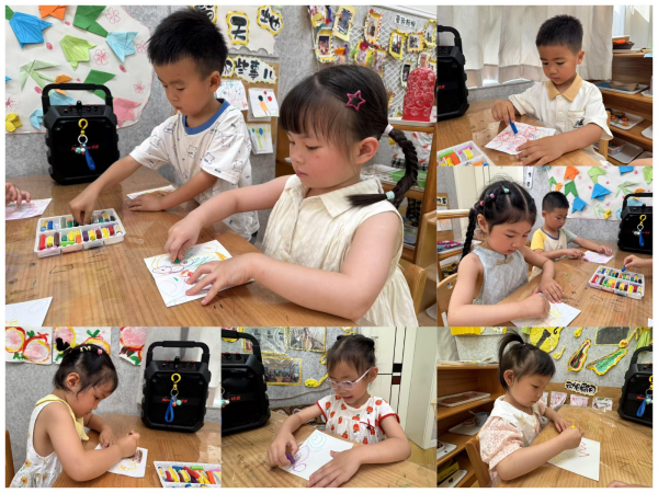 小耳朵听到好听的音乐时,我可以把音乐画下来。音乐快的时候,我画得很快;音乐慢的时候,我就画得慢。