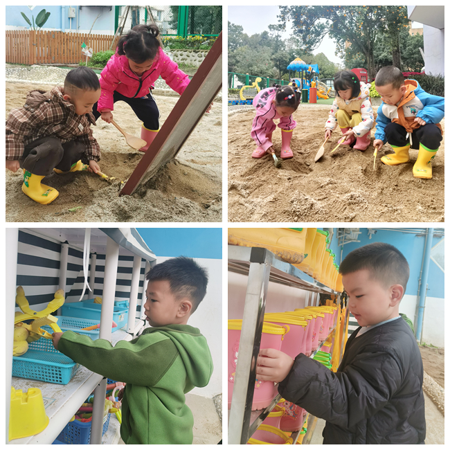 在沙池区,他们用小铲子仔细堆砌城堡,还主动将工具借给小伙伴一起游戏。游戏结束后,孩子们排着队主动把器材放回原位,脸上洋溢着满足和快乐的笑容。