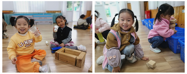 在建构区里,孩子们齐心协力,用小积木一块块堆叠起梦想中的小房子,那份专注与协作让友情在指尖传递。