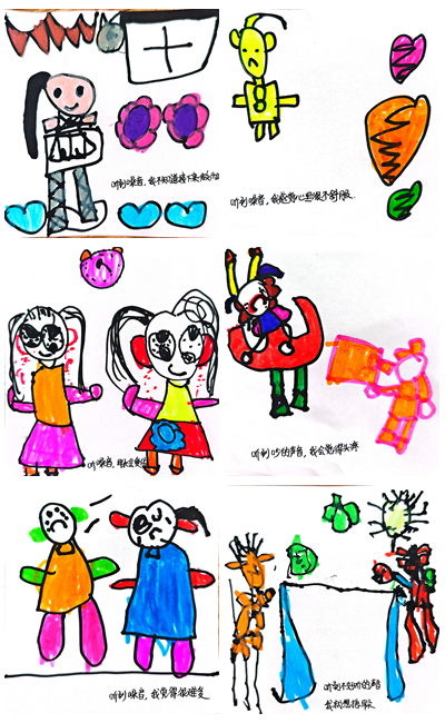 在对声音的不断了解中,孩子们也意识到了有时候需要“降噪”。他们想到了许多妙招,并在老师的帮助下梳理总结、积极实践。在一日生活中,“轻轻的”规则意识越来越强,行为也越来越自觉,慢慢养成了与同伴文明交往的好习惯。