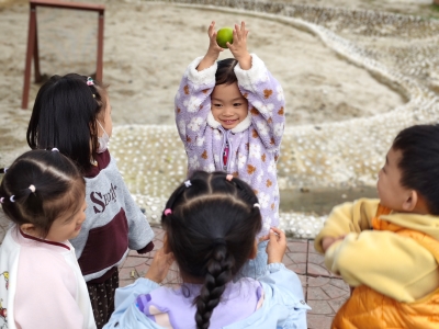 终于到了采摘这天,孩子们兴奋地围在橘子树旁,老师小心翼翼地架好梯子,慢慢爬上梯子,大家专注地看着金黄的橘子被轻轻摘下。孩子们仰着小脑袋,紧张又期待。当一个个金黄的橘子递到孩子们手中,他们小心翼翼地将其放进提前准备好的篮子中。望着满满的收获,大家脸上都洋溢着喜悦,那是劳动与等待换来的甜蜜笑容。
