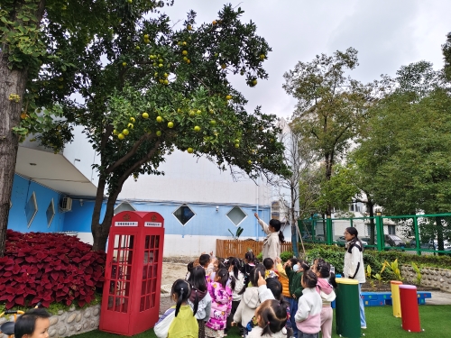 自从知道橘子成熟需要时间,孩子们就多了一个小习惯——每次路过都会特意到橘子树下去看一看,仰着小脑袋仔细观察:“今天橘子好像大了一点点!”“颜色好像比昨天深了一点呢!”满是对成长的期待。